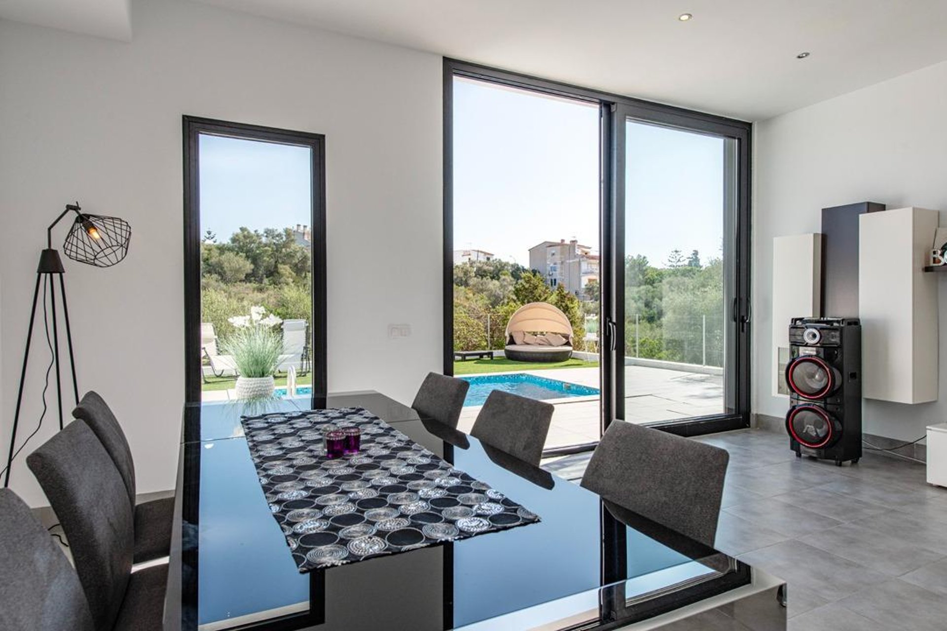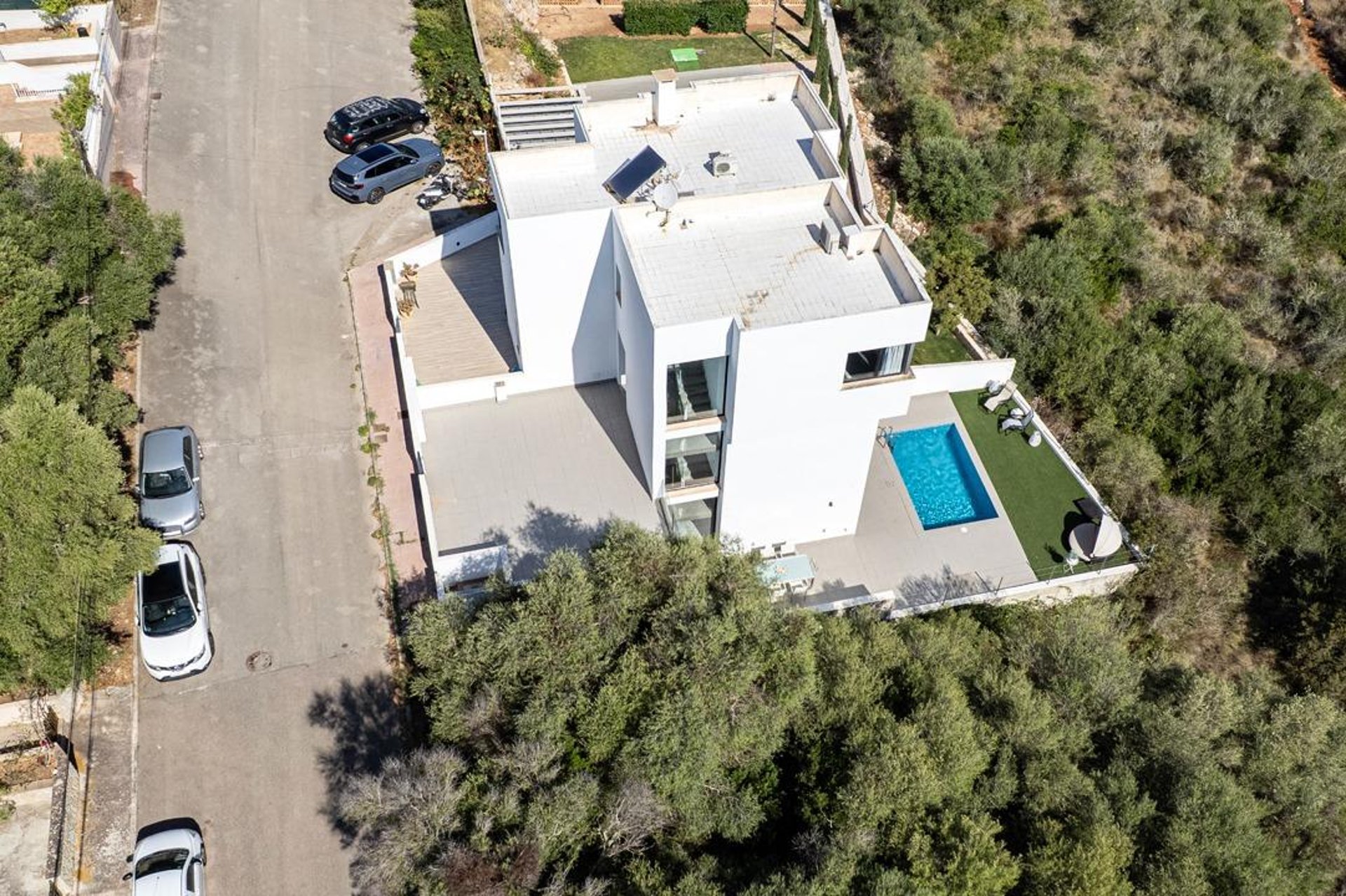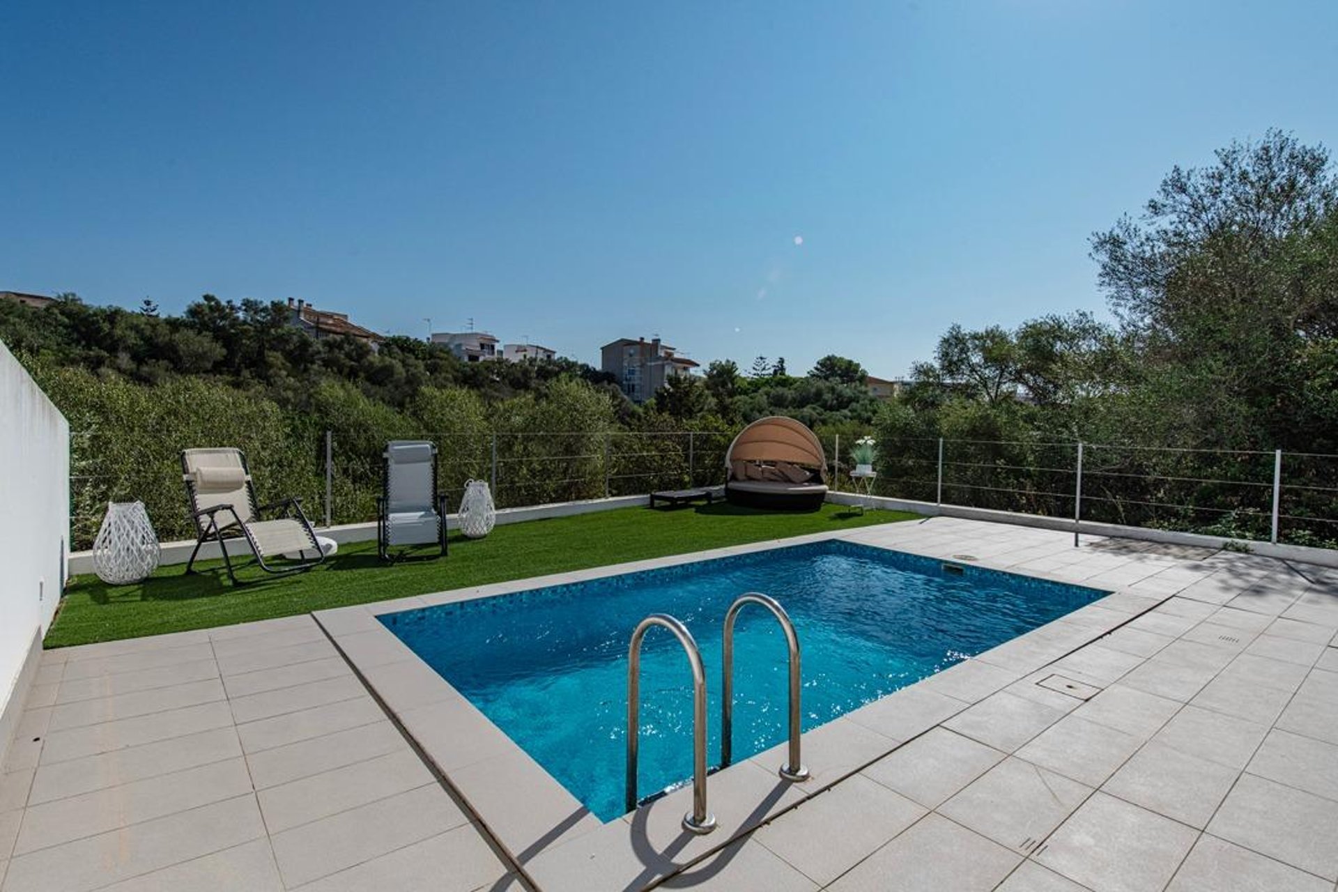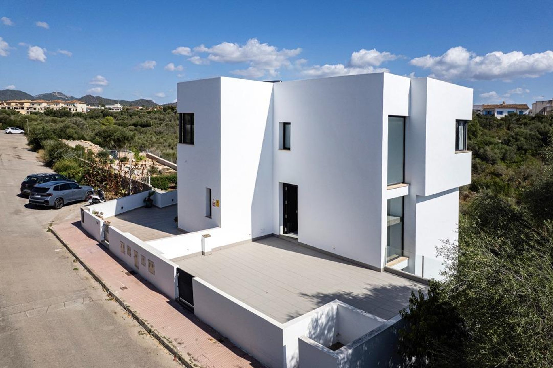 Upon arrival, you are welcomed by a modern, well-maintained façade and contemporary architecture. Built in 2010 on a plot of about 220 m², the exterior is designed to make the most of the Mediterranean climate: a spacious, sunny terrace—perfect for outdoor dining—and a private saltwater pool that invites relaxation and memorable moments with family and friends.